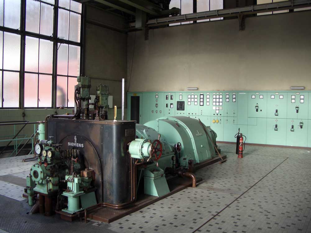 Kesselhaus und Turbinenhaus.